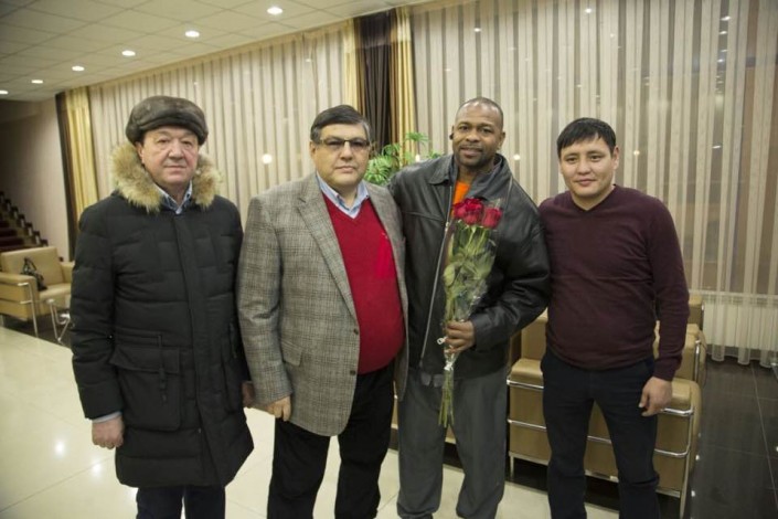 Во время своего визита в Караганду мировая звезда успел прогуляться по главным улицам Караганды и сфотографироваться с восторженными болельщиками, встретиться с высокопоставленными чиновниками региона. По доброй традиции Рою Джонсу подарили чапан, а он, в свою очередь, оставил собственный автограф на боксерских перчатках для победителя молодежного чемпионата по боксу Садреддина Ахмедова. После чего Рой Джонс исполнил несколько своих любимых песен прямо на ринге.