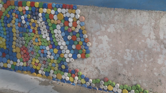 За летней кухней последовали стены сарая, а затем и самого дома. Материал для будущих картин на фасадах теперь собирают не только Поповы. Деревенские жители то и дело приносят пакеты с крышками. Сейчас на стенах построек их уже более 15 000 штук.
