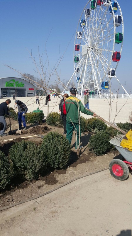 "У нас проект благоустройства еще не закончен. Мы же открылись в начале марта, хотели жителям города на 8 Марта сделать праздник, сейчас проект благоустройства и озеленения дальше продолжается. Так что все еще впереди. Мы сейчас плитку только успели выложить и открыться. А сейчас посадки делаем. Буквально сейчас везут колонновидные туи. Мы их посадим в декоративные кадки и расставим по периметру площади. Мы убрали около 10 елей, а высадим штук 90. Еще посадим взрослые лиственные деревья - штук 60. К концу марта мы планируем высадить около 150 деревьев",  - рассказал директор парка Коктобе Нурлан Казиев.