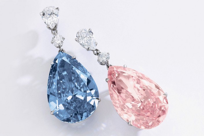 В мае 2017 года пара серег с фантазийными цветными бриллиантами, голубым и розовым, была продана на женевском аукционе Sotheby's по цене свыше 57,4 миллиона долларов. Крупнейший в своем роде ярко-голубой бриллиант безупречной чистоты весом в 14,54 карата "Голубой Аполлон" ушел за более чем 42,1 миллиона долларов. А 16-каратный бриллиант интенсивно-розового цвета "Розовая Артемида" обрел своего нового владельца за более чем 15,3 миллиона долларов. Такая разница в цене объясняется тем, что голубые бриллианты встречаются реже, чем розовые. Покупатель сережек предпочел остаться неизвестным.