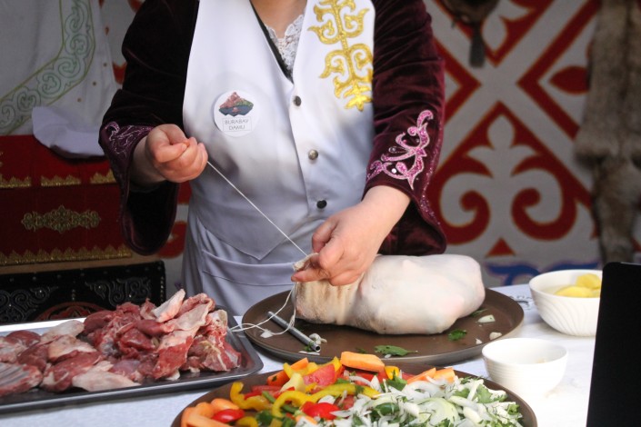 На этом знакомство с казахской культурой не закончилось - Джону Уоррену предложили поучаствовать приготовлении национального блюда - сірне. Данный мастер класс был организован ТОО "Бурабай Даму" УДП РК.