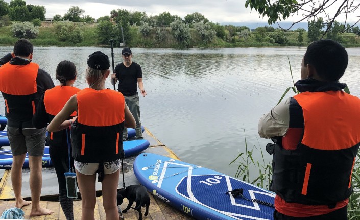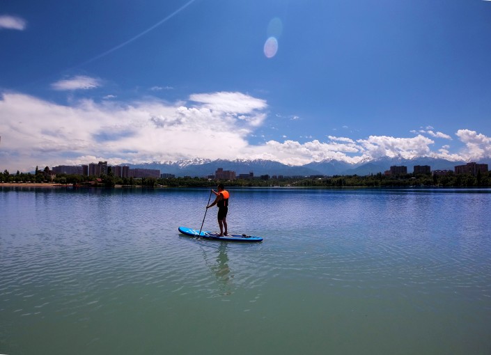 Впервые SUP-серфинг появился на Гавайских островах, но потом стал активно развиваться в далеко не тропических странах. Недавно, например, на доске начали кататься в Казани, а затем и в Актау. В Алматы необычную инициативу развивает 28-летний Даниил Гаянцев.