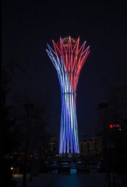В Сети появилось фото "Байтерека", подсвеченного цветами французского флага
