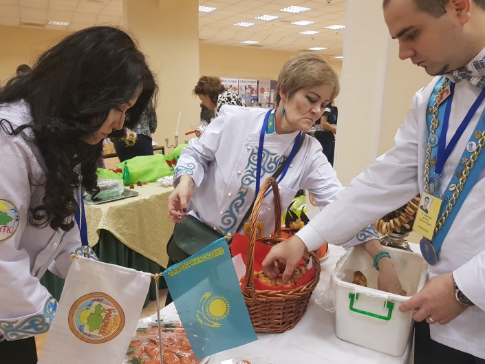 В этом году казахстанскую команду юниоров представили учащиеся Алматинского финансово-правового и технологического колледжа Ассоциации шеф-поваров РК. Ребята приготовили индейку, запеченную в рубашке из нежного теста, с гарниром из айвы, тыквы и сельдерея, а также коврижку с хурмой и украшением из песочного теста в виде юрты. В качестве напитка повара представили сидр из алматинского апорта.