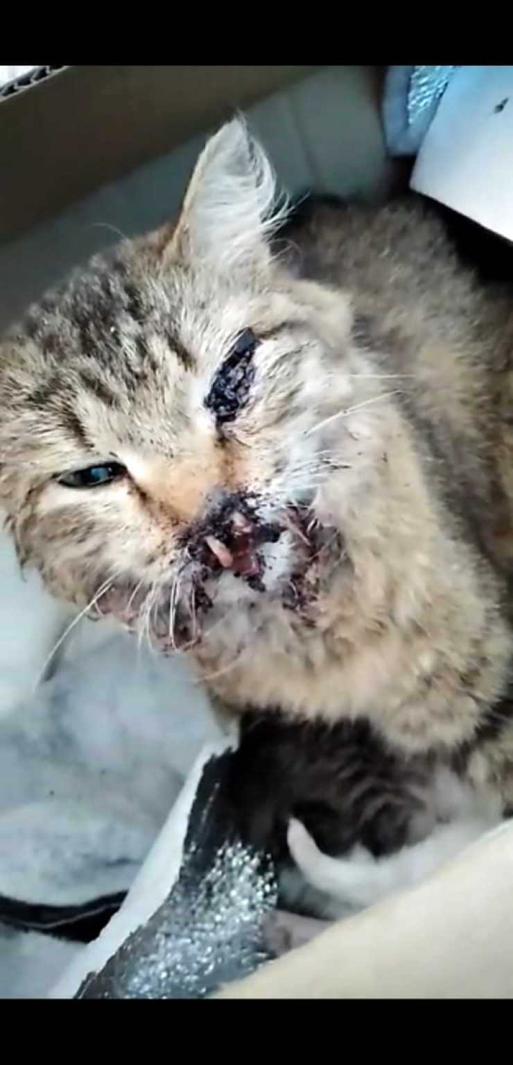 "Состояние кошки было очень тяжелым. У нее была разбита полностью часть мордочки, подбит глаз, откушен кончик языка, все было в крови, она не могла есть и совсем не ходила в туалет. Когда она в первую ночь отходила от наркоза, она вскрикивала от боли. Это было жуткое зрелище. Оно не оставило равнодушной даже мою дочь, которая училась на медика и видела немало людских страданий. Удивляет, что даже в таком состоянии она нашла в себе силы вернуться к котятам. Некоторым людям есть чему поучиться у этой кошки", - рассказывает Римма Халиулина, которая приютила ее в дальнейшем.