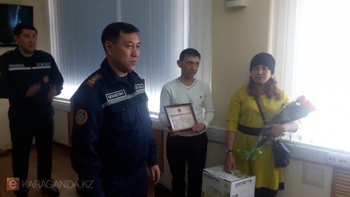 Начальник ДЧС Карагандинской области Ибрагим Кульшимбаев сердечно поздравил и поблагодарил Тахира Закизьянова и его супругу за самоотверженный поступок.