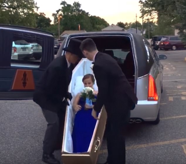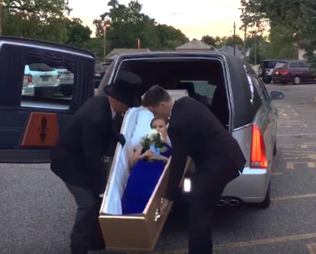 Школьницу привезли на выпускной бал в открытом гробу © youtube.com/NJ.com