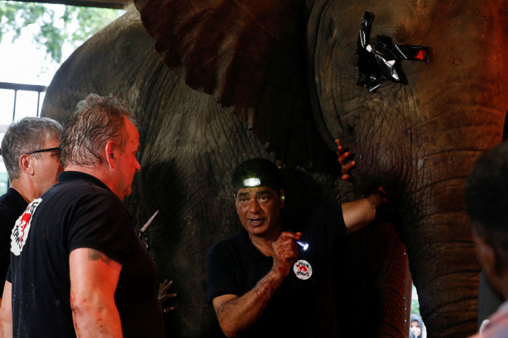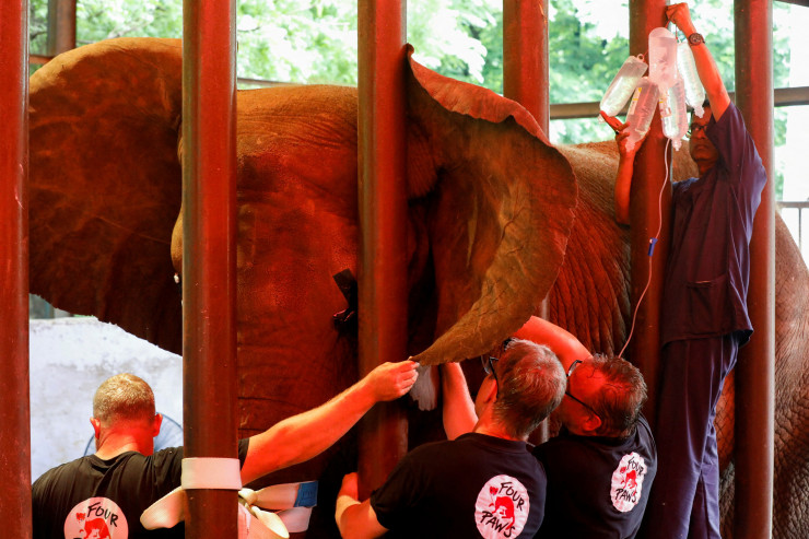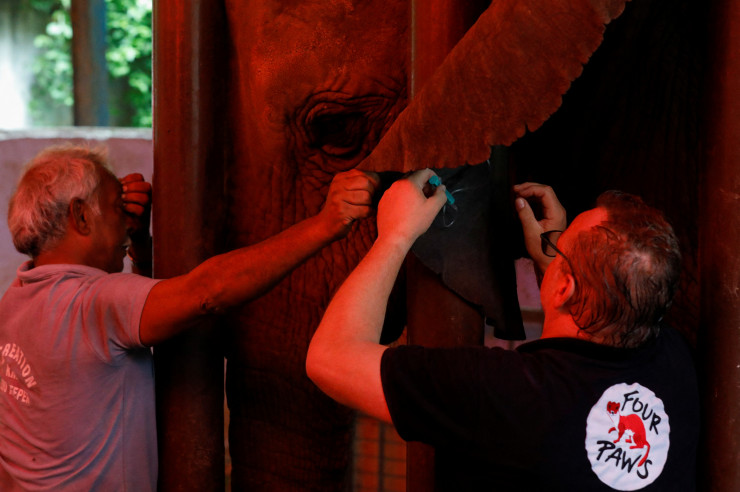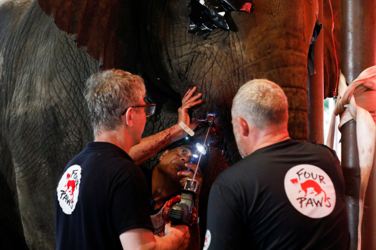 Для снятия боли потребовалась уникальная седация, для которой слониха должна была быть в сознании. Процедуру проводила команда из восьми экспертов из благотворительной организации Four Paws International.