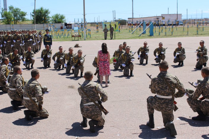 Рядовой срочной службы Алдияр Казанбаев из поселка Сергеевка Северно-Казахстанской области, после принятие присяги, прямо на плацу сделал предложение руки и сердца своей девушке. Свидетелями романтического поступка стали более трехсот человек.