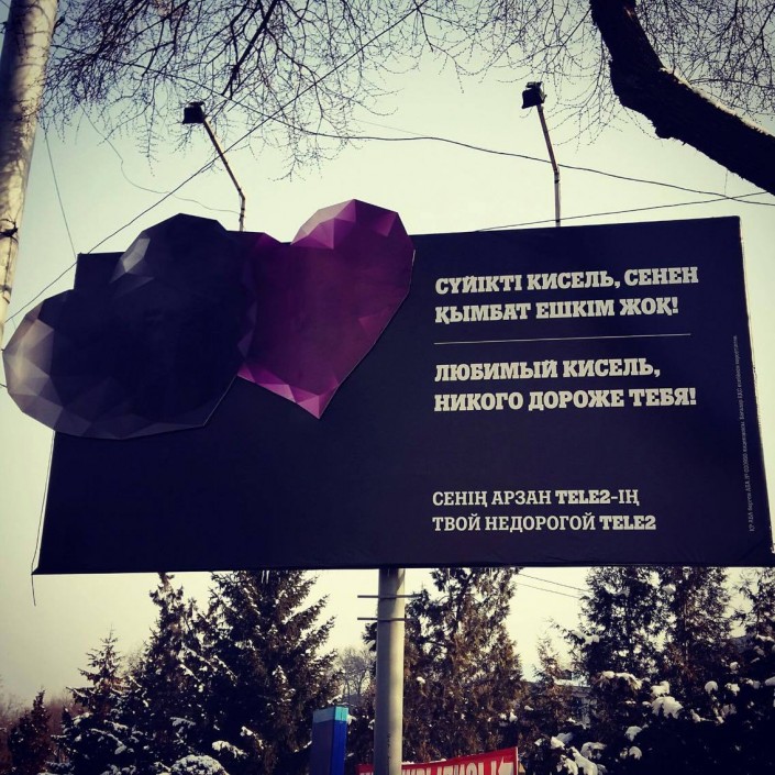 Сотовый оператор Tele2 Казахстан креативно поздравил конкурентов по рынку с Днем всех влюбленных, передает корреспондент Tengrinews.kz.