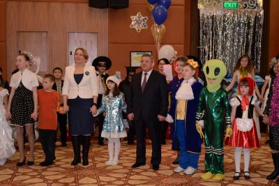 А на президентской елке в Акмолинской области был замечен костюм инопланетянина.