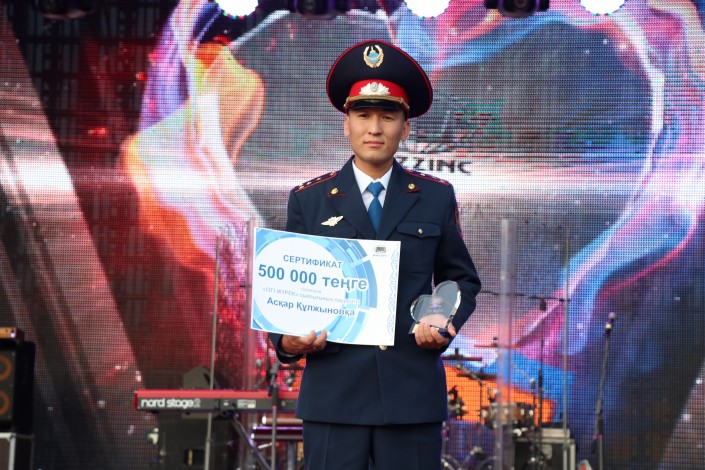 Еще одну премию "Iзгi жүрек" вручили участковому из Усть-Каменогорска Аскару Кулжынову, который вытащил из реки женщину, спрыгнувшую с моста.