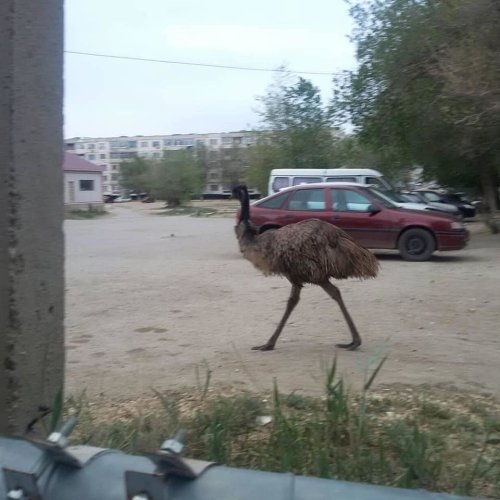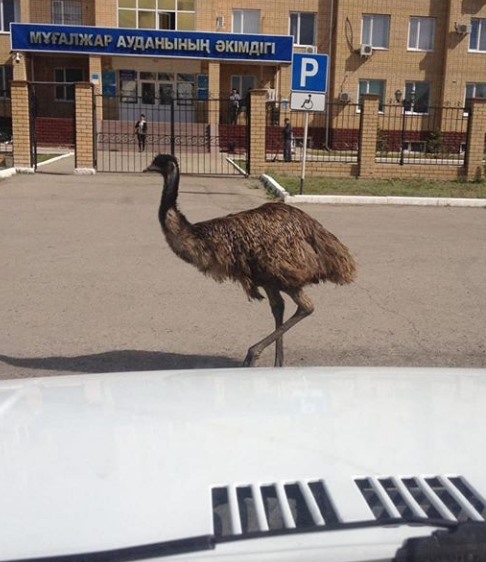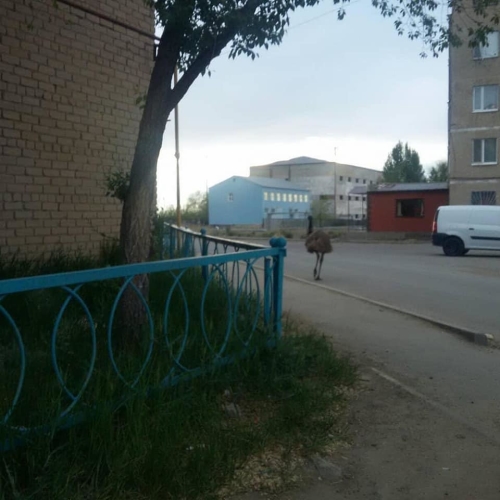 Фотографии с расхаживающим по улицам города страусом появились в пабликах и социальных сетях. Жители районного центра Мугалжарского района Актюбинской области были удивлены, увидев гуляющую по здешним дворам птицу. Страус даже успел покрасоваться перед местным акиматом.