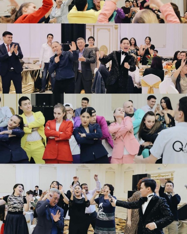 "Әрине, ондай оқиғалар жиі болып тұрады. Өзім ұйымдастырған бір тойда 28 адамнан құралған ішекті аспаптар оркестрі венн музыкасын ойнап тұрды. Одан кейін 15 жұп яғни 30 адам балет биледі. Сонымен 58 адам қалыңдық пен күйеужігітті тойханаға кіргізген болатын. Барлығы 58 адамның сүйемелдеуімен болды", - дейді асаба.