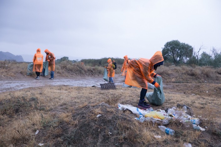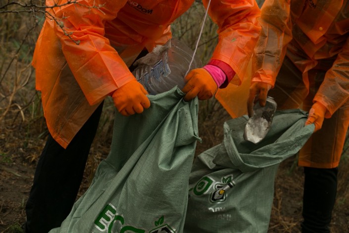 За несколько часов работникам "Технодома" удалось собрать более 1000 мешков мусора в окрестностях Тамгалы Тас.