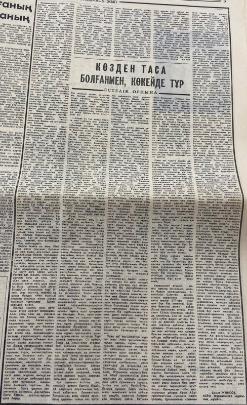 Бұл материалда КСРО журналистер одағының мүшесі Самат Жүнісов "Көзден таса болғанмен, көкейде тұр" атты мақаласында желтоқсан оқиғасына бес жыл толуына орай жазған ой-толғауы.