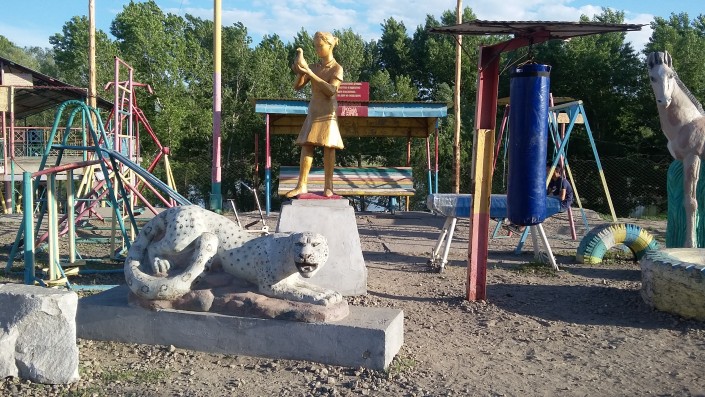 К слову, четыре года назад тракторист стал обустраивать набережную реки, возле которой живет. За свой счет он укрепил овраг, поставил ограждение, а потом занялся облагораживанием территории. Своими руками соорудил игровую площадку, скамейки. Здесь же установил различные малые скульптурные формы, найденные бесхозными на свалках, оборудовал большую смотровую площадку-террасу с видом на Иртыш. Многие люди уже знают это место и приходят сюда отдохнуть. Памятник Букейханову, постамент для которого мужчина подготовил прямо у входа на террасу, стал ключевой фигурой на обустроенной им же набережной.