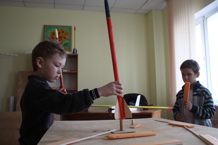 Школьники на занятии технического моделирования.