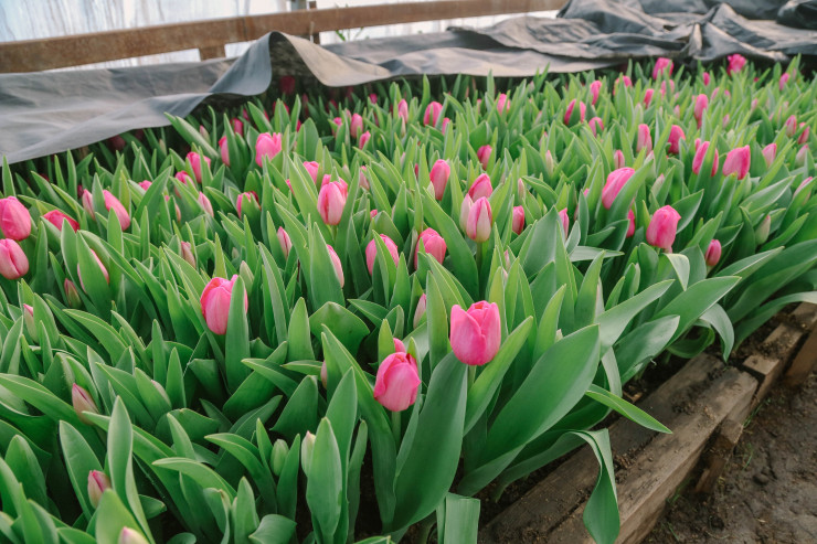 Следующие три месяца занимает первый период так называемой "выгонки" - ускоренного выращивания тюльпанов. В начале января в парниках начинают топить печи и поливать растения.
