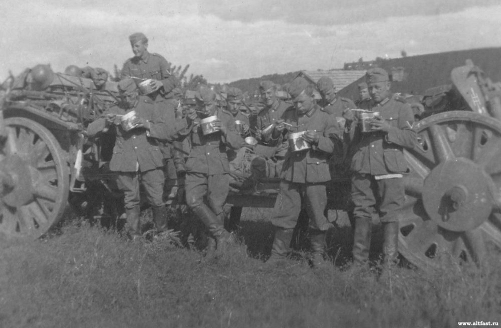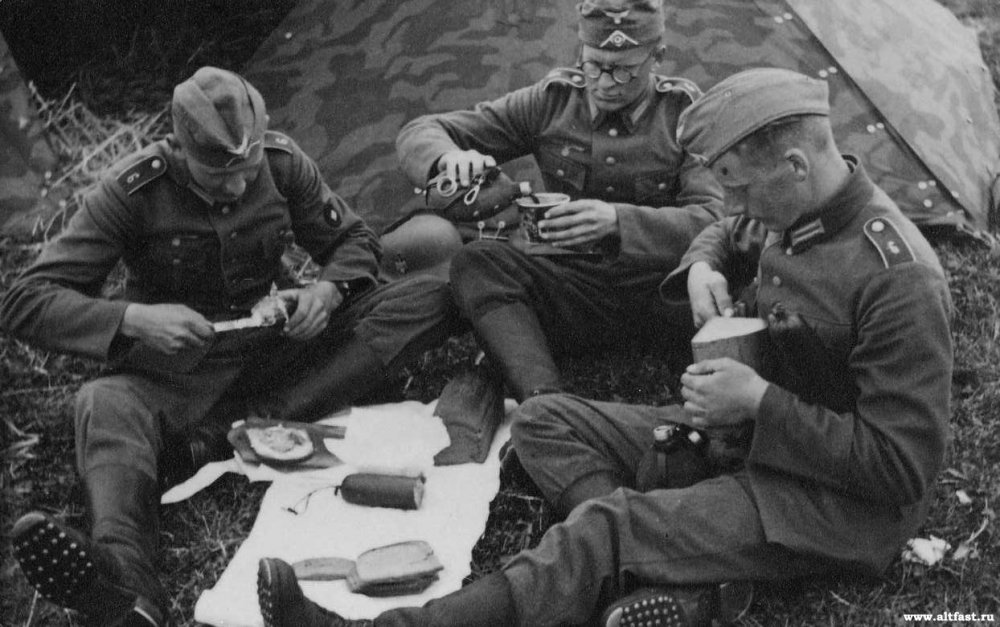 Одним из главных вопросов военного быта было снабжение армии и военный рацион. Понятно, что голодным много не навоюешь. Суточная норма выдачи продовольствия сухопутных сил Вермахта на сутки по состоянию на 1939 год: