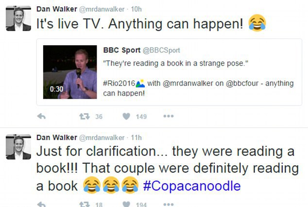 Речь репортера прервала парочка, которая, по всей видимости, занималась сексом на пляже прямо позади журналиста. Сначала телеведущий пытался подавить приступы смеха, а потом прокомментировал событие. "Для тех, кто спрашивает, что происходит позади меня: мы не будем приближать изображение, но это не то, о чем вы подумали. Это просто объятия. Они, кажется, читают книгу. Читают книгу в странной позе", - заявил Уокер.