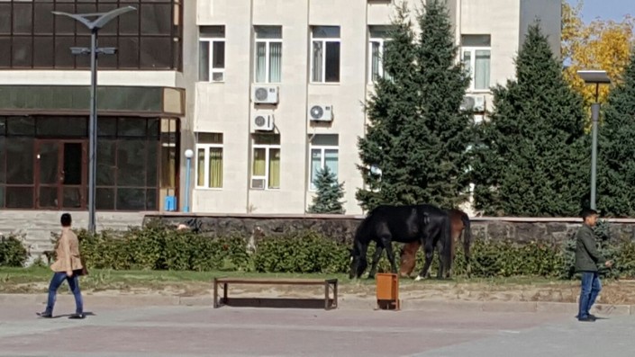 Мужчина подчеркнул, что такое происходит уже не в первый раз, но меры до сих пор приняты не были. "В центре города прямо перед окнами акима и памятником академику Сатпаеву пасутся лошади и никто их не контролирует. При том, что там висит камера, передающая картину происходящего по периметру площади на монитор, который находится прямо на столе акима. Дорогостоящий газон - это для них лакомство, его постелили буквально два месяца назад", - сказал Кошанов. "Наверное, над этим все будут смеяться", - подчеркнул он. Мужчина предположил, что лошади, возможно, принадлежат жителям близлежащего частного сектора.