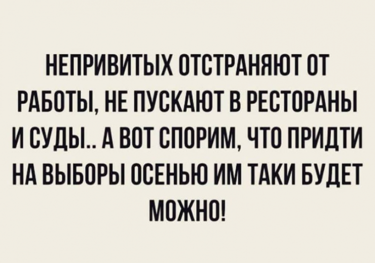 Қазақстанда коронавирусқа қарсы вакцина тақырыбы әлі де өзекті. 2 шілдеден бастап барлық қызметкері вакцина салдыруы тиіс нысандардың кеңейтілген тізімі күшіне енді. Тізбеге базарлар, сұлулық салондары, дәмханалар, мейрамханалар, қызмет көрсету нысандары және халық баратын басқа да орындар кірді. Tengrinews.kz тілшісі осы мәселеге байланысты Желідегі әзілдер топтамасын жасады.