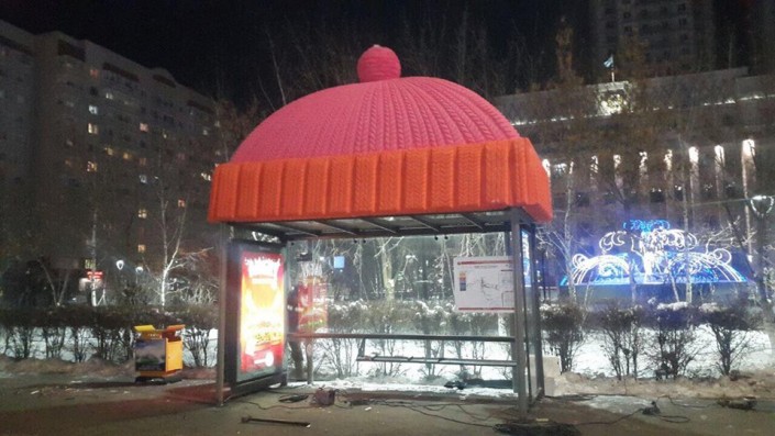 "Вязаные" шапки на автобусных остановках удивили астанчан