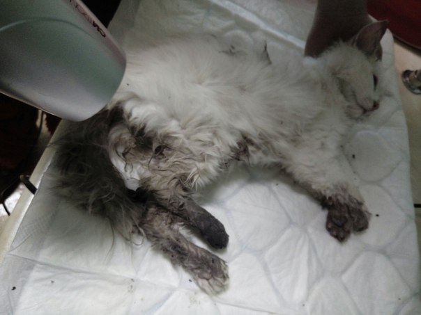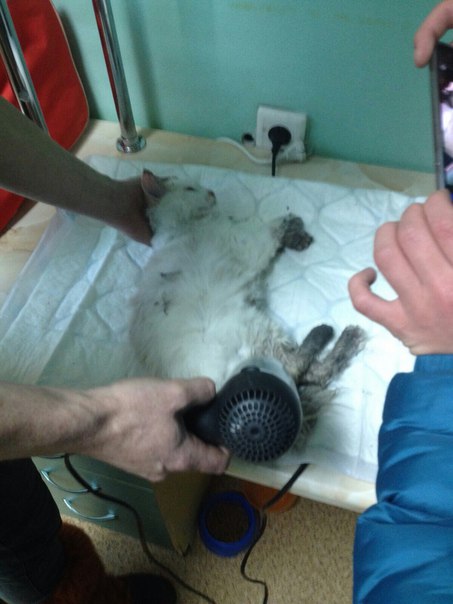 Мы согревали его 2 часа, - вспоминает Вячеслав Козлов. - В это время ему поставили три укола, он не шевелился, его кожа была теплая, а внутри холодная. Мы грели его еще полтора часа". Конечности котенка удалось сохранить, несмотря на сильное переохлаждение.