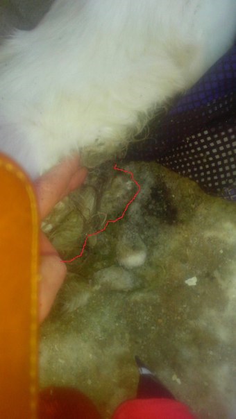 Судя по всему, накануне кто-то высыпал еще горячую золу мимо контейнера. Котенок решил погреться на ней и уснул. А когда проснулся, растопленный вокруг него снег уже сковало морозом. Лапа и хвост котенка оказались вмерзшими в лед.