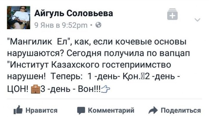 Не удержалась от шутки и депутат Мажилиса Парламента 4 и 5 созывов Айгуль Соловьева, ведь казахи славятся своим гостеприимством и многочисленной родней.