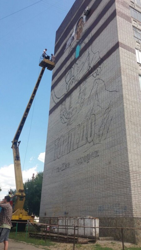 Хоккеиста с девятиэтажный дом рисуют стрит-арт-художники в Усть-Каменогорске. Портрет нападающего команды "Торпедо" Талгата Жайлауова сейчас создает творческая группа студентов из Алматы по заказу акимата Усть-Каменогорска, передает корреспондент Tengrinews.kz.