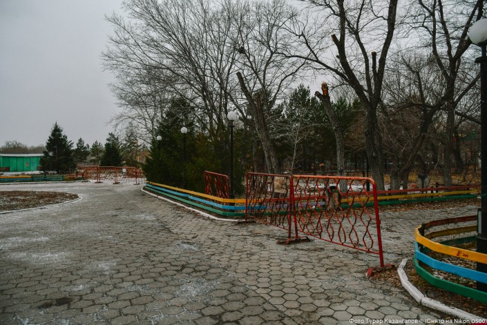 Осенью в заброшенном парке развлечений особенно жутко. О былом величии уже ничто не напоминает. Да и соседство с бывшими зданиями обанкротившегося банка нагоняет грусти и серости.