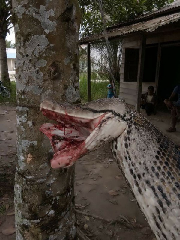 Мужчина работает охранником на плантациях масличной пальмы в отдаленном районе Батанг-Гансал. Обходя территории, он заметил рептилию длиной 7,5 метра и решил поймать ее. Охотник попытался затолкать питона в мешок, но тот схватил за левую руку его мертвой хваткой.