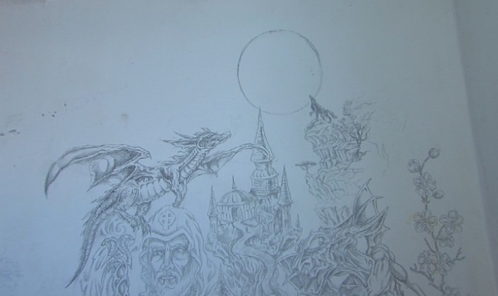 Раньше с помощью красок изображал диснеевских героев - Микки Мауса и Дональд Дака, а теперь у художника совсем другие интересы - рисовать карандашом персонажей из мира фантастики. Первой появилась гаргулья. Александр вышел в подъезд и решил вспомнить былое, а под рукой как раз оказался карандаш.