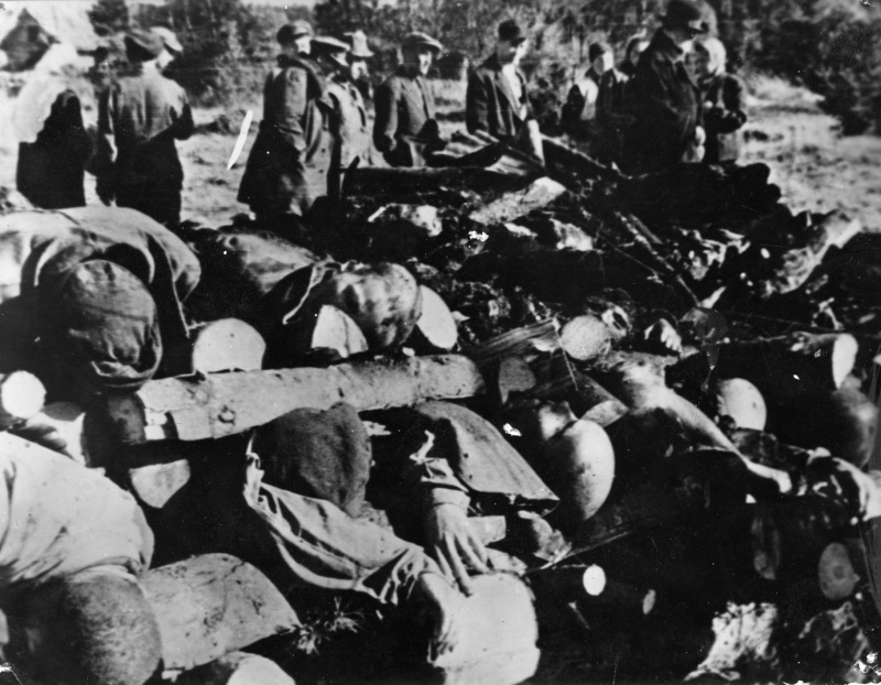 Трупы советских граждан, обнаруженные на территории гитлеровского концлагеря в Дарнице. Район Киева, ноябрь 1943 год.