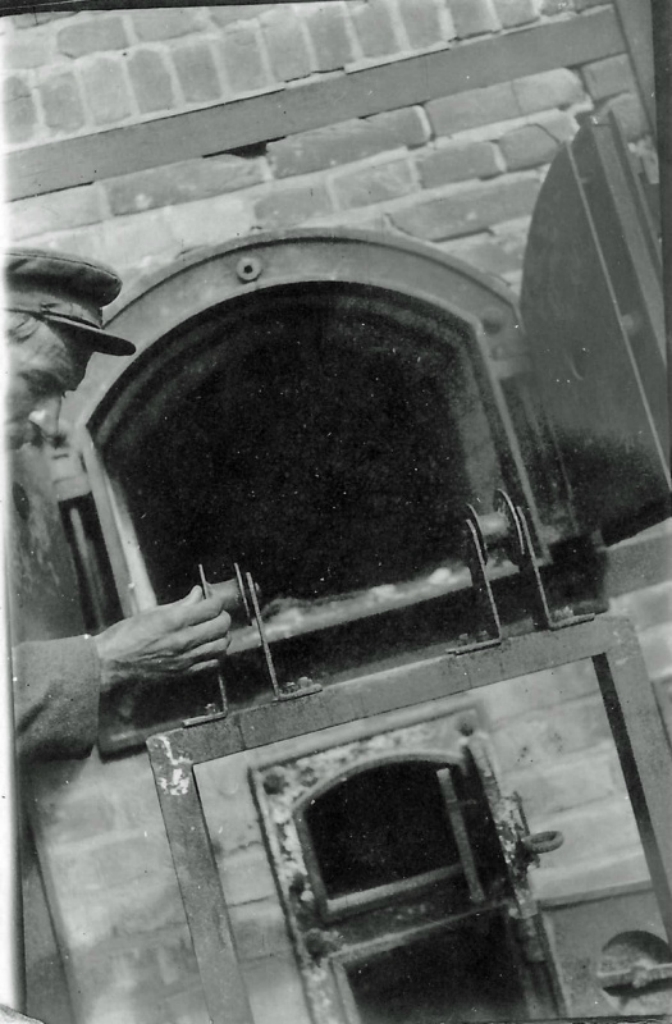 Печь крематория концлагеря Майданек (Люблин, Польша). Слева лейтенант А.А. Гуйвик.