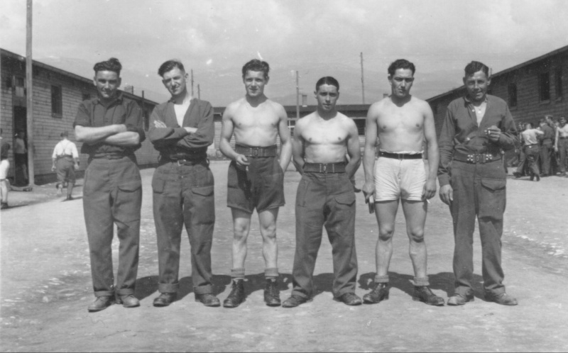 Шестеро британских пленных на территории концентрационного лагеря "Шталаг XVIIIA".