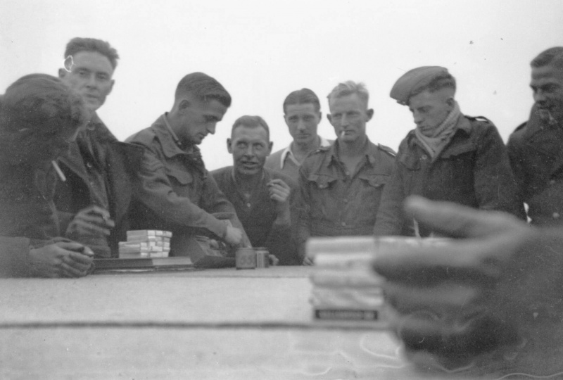 Пленные солдаты союзников играют на сигареты в игру Two Up на территории концлагеря "Шталаг 383".