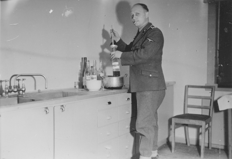 Сотрудник норвежского концлагеря Фальстад оберштурмфюрер СС Эрих Вебер (Erich Weber) на кухне комендантского дома.