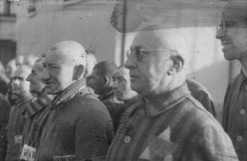Портрет узников концлагеря Освенцим после его освобождения советскими войсками.