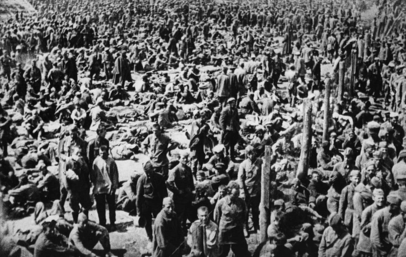 Советcкие пленные в концентрационном лагере Ламсдорф (Stalag VIII-B, ныне - польская деревня Ламбиновице).