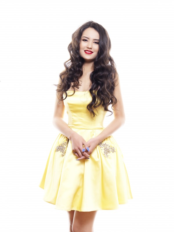 17 лет, рост 174 сантиметра. Ученица 11-го класса "Новой школы". Изучает казахский, английский и испанский языки, увлекается уроками актерского мастерства, любит играть в бадминтон. Пунктуальная, ответственная, внимательная, добрая, исполнительная и разносторонняя личность. Цель участия в конкурсе: доказать всем и самой себе, на что способна, раскрыть себя и свою личность.