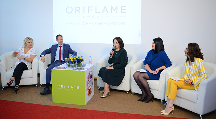 После официальной части презентации концептуального центра публика переместилась в зону Public Talk, где состоялись пресс-конференция и сессия вопросов и ответов. Гости посетили два мастер-класса от ведущих экспертов компании. Продакт-тренер Oriflame в странах СНГ, эксперт по уходу за кожей лица Анастасия Фурка провела для всех желающих диджитал-тестирование кожи лица, а официальный визажист Oriflame в России и СНГ Алена Терещенко - мастер-класс по модным трендам в макияже.