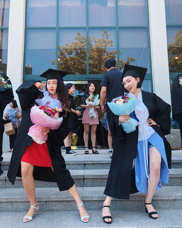 Сол жақтағы Алтынай Сейтханова, Сеул, Sejong University. © Жеке мұрағаттан
