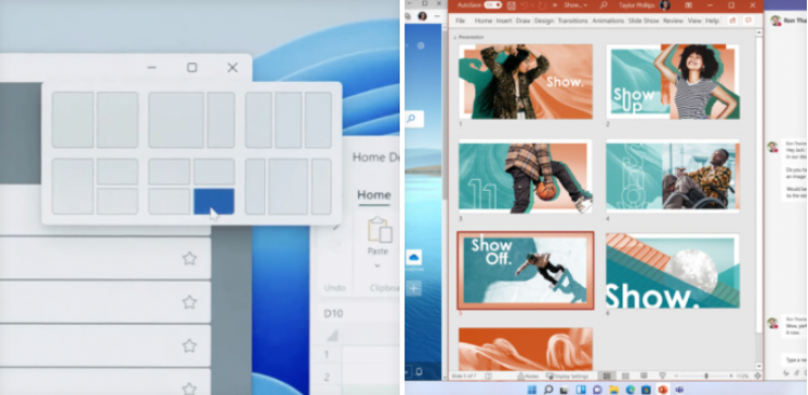 • В новой ОС появились Snap Layouts, что позволит управлять расстановкой открытых окон. К примеру, это потребуется при открытии двух, трех и большего числа программ на одном экране.  Система запомнит занимаемую приложением позицию и предложит расставить окна в том же порядке;