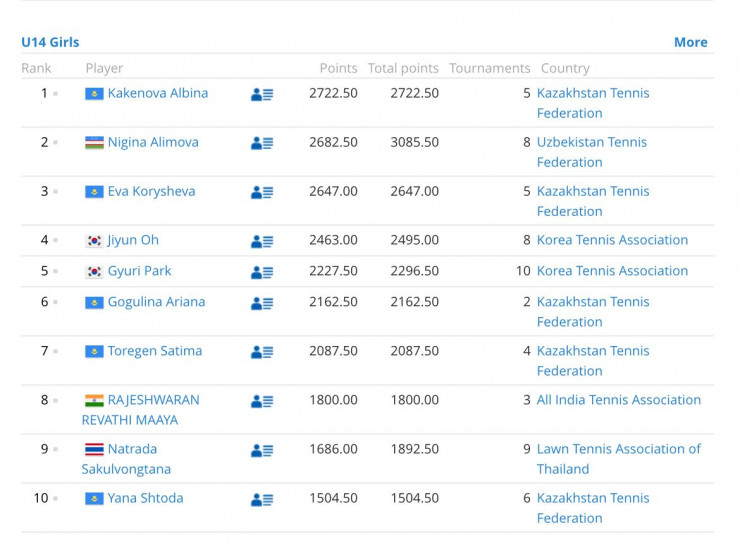 Таким образом, в топ-10 азиатского рейтинга среди девушек до 14 лет сразу пять представительниц Казахстана.