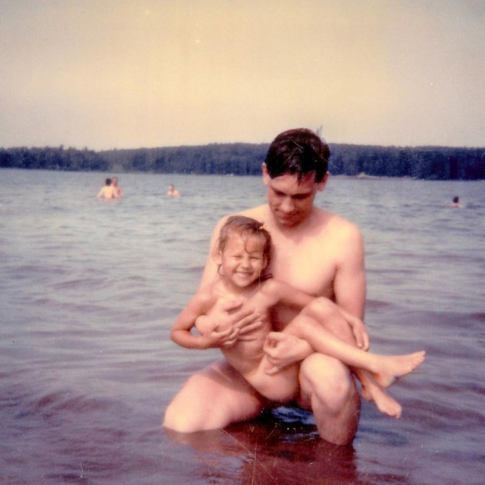 На архивном кадре она сидит на руках у своего отца в водоеме абсолютно без всякой одежды. "Счастливое детство", - подписала фотографию Курникова.