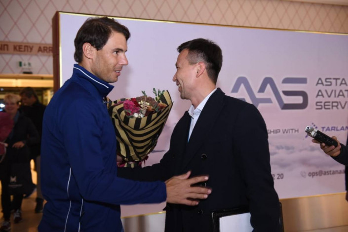Первая и вторая ракетки мира серб Новак Джокович и испанец Рафаэль Надаль со своими командами приземлились в международном аэропорту Нур-Султана, передает Тengrinews.kz со ссылкой на Vesti.kz. Именитых гостей встречал президент Федерации тенниса Казахстана Булат Утемуратов.
