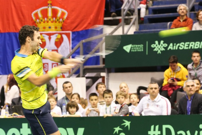Казахстанский теннисист Михаил Кукушкин обыграл Виктора Троицки и сравнял счет в гостевом матче 1/8 финала Кубка Дэвиса со сборной Сербии, сообщают Vesti.kz.